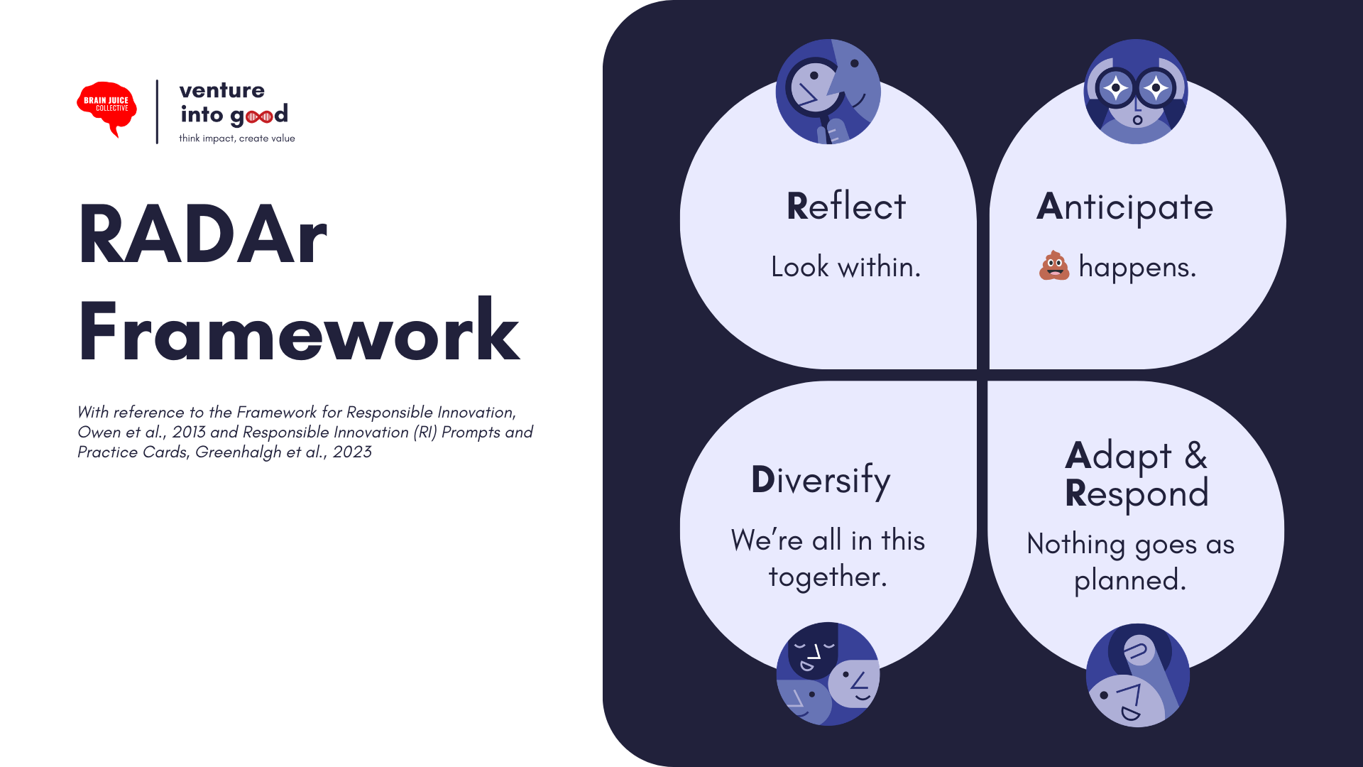 Together, RADAr equips innovators to anticipate change, reflect critically, include diverse voices, and adapt responsibly — ensuring innovation is not just effective, but equitable and sustainable.